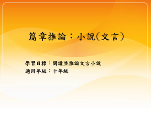 學習內容:Ad-Ⅴ-4 非韻文:如古文、古典小說、語錄體、寓言等。