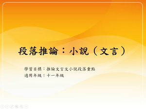 學習內容:Ad-Ⅴ-4 非韻文:如古文、古典小說、語錄體、寓言等。