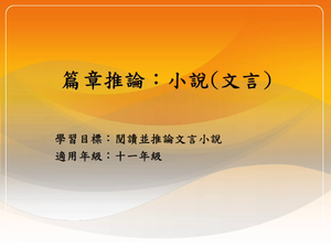 學習內容:Ad-Ⅴ-4 非韻文:如古文、古典小說、語錄體、寓言等。