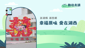湖西社區活動中心解說「幸福原味 愛在湖西」原由,前往社區多功能戶外廣場,透過環繞的文化牆面認識湖西,從一篇道盡人、事、時、地、物、氣候的詞曲「湖西頌」開始走讀在地文化,認識開澎舉人 辛齊光,再來學學湖西腔,再認識精神寄託天后宮,和學學傳統醫療的學問。