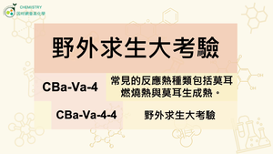 學習內容:CBa-Ⅴa-4 常見的反應熱種類包括莫耳燃燒熱與莫耳生成熱。