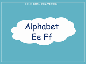 本影片所學字母為Ee, Ff ,使用的單字包含elephant/ frog/ fish/ Facebook。
