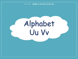 本影片所學字母為Uu, Vv ,使用的單字包含 USA/ UK/ unicorn/ uniform/ umbrella/