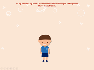 本影片所學為身體外型的單字,利用動畫中不同身材外型的朋友來介紹,如:heavy/short/thin/tall/strong,使用的例句為The boy is ________(身體外型).