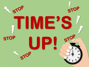 本影片中所學的教室用語為Time's up. 透過動畫中老師請學生在黑板寫字並限制時間的情境來學習用語的使用時機,並利用圖片學習其他用語如Can you spell "cat"?/ Be quiet./ Let's count./ Come here./Raise your hand./Good morning./Look!/ Listen!/ Good afternoon./Put down your hand./ Let's play./Stand up./ Sit down.。
