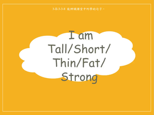 本影片所學句子為I am tall/ short/ strong/ thin/ fat.,透過比較猴子兄弟的身高、熊的體型和健身房中的對話,練習句子I am tall/ short/ strong/ thin/ fat.。
