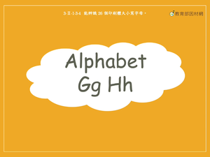本影片所學字母為Gg, Hh,透過動畫學習字母筆畫,並利用日常生活中常見的物品或品牌與字母做聯想,影片中所使用G開頭的單字:goat, girl,H開頭單字: horse, hippo。