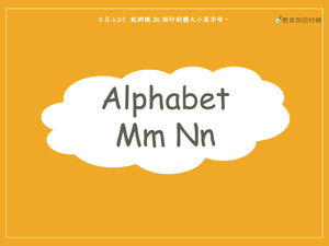 本影片所學字母為Mm, Nn,透過動畫學習字母筆畫,並利用日常生活中常見的物品或品牌與字母做聯想,辨認出Mm,Nn。