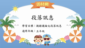 學習表現:5-Ⅲ-9 因應不同的目的,運用不同的閱讀策略。