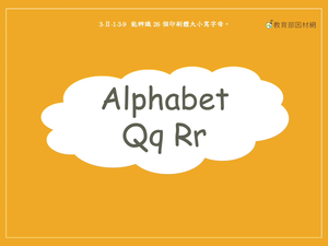 本影片所學字母為Qq, Rr,透過動畫學習字母筆畫,並在外型相似的字母裡辨認出Qq, Rr。