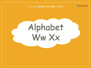本影片所學字母為Ww, Xx,透過動畫學習字母筆畫,並利用日常生活中常見的物品做聯想,辨認出Ww, Xx。