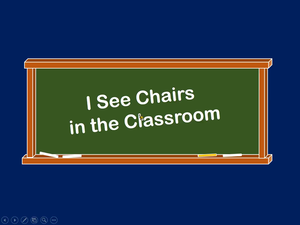本影片所學為物品相關單字,透過情境帶出所學單字,影片中使用的單字包含:window, desk, door, blackboard, chair,影片中所提及的相關單字為orange, green, red, purple, black。