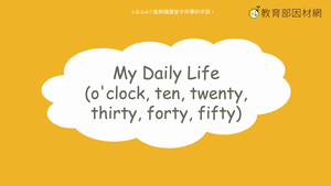 本影片所學為時間相關字詞-o'clock, ten, twenty, thirty, forty, fifty,藉由主角Mary紀錄一天的生活的情景,了解主角日常作息,並讓學生學習幾點幾分的說法。影片的最後讓學生根據敘述及圖片回答出正確的時間。使用的句型包含: It’s six fifty! It’s time for Mary to brush her teeth./It’s seven forty! It’s time for school./It's ten ten. Mary and her friends have a good time./It’s twelve o'clock. Mary is hungry. It’s time for lunch./It's twelve forty. It's time to take a nap./Mary goes home at three fifty in the afternoon.