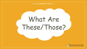 本影片所學句子為What are these/ those?,藉由媽媽與水果攤老闆的對話,介紹本單元句型What are these/ those?以及回應句They are /They're ______.(bananas, apples, grapes, watermelons),距離目標物很近使用單字these;距離很遠則用單字those。當學生認識句型後,再利用不同的情境讓學生練習運用。影片的最後,讓學生將所學句型進行重組以及根據圖片選出正確的句子。