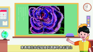 影片開始從觀察生活中的花卉導入,進而賞析藝術家如梵谷〈向日葵〉與林玉山〈蓮池〉的經典作品,感受花朵由含苞、綻放到凋謝的生命歷程。接著運用粉蠟筆混色、重疊與厚塗等技巧,結合類似色與漸層色的表現,讓學生學習如何透過色彩層次描繪花卉的多變姿態,學生不僅能掌握配色方法和粉蠟筆技巧,也能在創作中體會花卉生命的變化與深層意涵。學習目標包括:一、認識花卉的色彩變化與生命象徵;二、學習粉蠟筆漸層混色的運用;三、能以藝術作品表達對生命週期的感受。