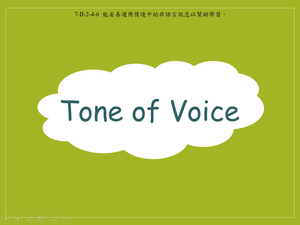 本影片所學為不同情緒表達時的說話語氣(tone of voice),當一個人開心(happy)、難過(sad)、驚嚇(scared)、生氣(angry)時,說話的語氣都會不一樣,語氣變化可以從音量大小、說話快慢、聲音高低去判斷,例如:生氣時,音量會變大且聲音變得尖銳,所以即使不理解句子的意思,也可以從說話的語氣來判斷一個人的心情。