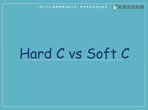 本影片所學發音為Hard C和Soft C。字母C原本的發音為Hard C [k],當字母C置於e, i, y前面時則發音變為Soft C [s]。影片中屬於Hard C的單字有:car, corn, cut;屬於Soft C的單字則有:bicycle, city, cellphone。