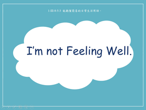 本影片所學對話用語I'm not feeling well.,透過動畫中的情境與角色間的對話來練習,了解該句用語的使用時機與意義,影片中搭配學習的句型為I'm under the weather./ I'm sick.,最後利用練習題引導學生選出正確的答案並熟悉所學句型。