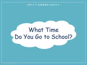 本影片所學為詢問時間相關句型,透過影片主角一天的行程,帶出問句What time do you wake up/ have breakfast/ go to school/ have lunch/ leave school?,與答句I ________ at ______.來表示上述的動作是在什麼時間完成的,最後利用練習題引導學生選出對話中提到的正確時間以熟悉所學句型。