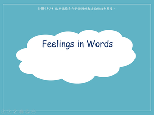 本影片所學為情緒相關單字happy, unhappy, angry, sad, excited, confident, afraid, nervous,透過情境及語調的不同讓學生學會分辨人物所表達的情緒。