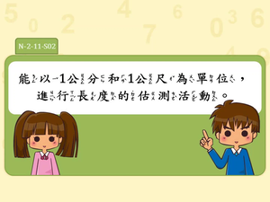 能以1公分和1公尺為單位,進行長度的估測活動。