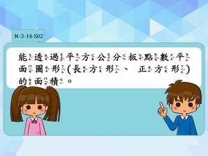 學習內容:N-3-14 面積:「平方公分」。實測、量感、估測與計算。