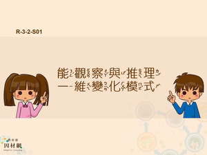 學習內容:R-3-2 數量模式與推理(I):以操作活動為主。一維變化模式之觀察與推理,例如數列、一維圖表等。