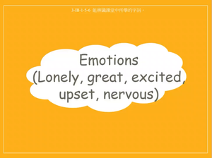 本影片所學為情緒相關單字lonely, great, excited, upset, nervous,透過情境讓學生學會如何使用該單字,影片中所提及的句型包含: How do you feel? 及回應句I feel nervous.