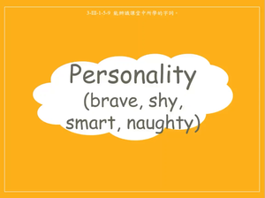 本影片所學為人物個性相關單字brave, shy, naughty, smart,透過在學校與不同人互動的情境讓學生學會如何使用該單字,並透過練習題配對人物個性的描述與圖片,來引導學生選出對應的句型圖片。