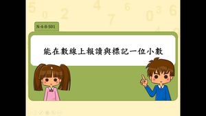 學習內容:N-4-8 數線與分數、小數:連結分小數長度量的經驗。以標記和簡單的比較與計算,建立整數、分數、小數一體的認識。