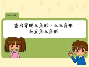 學習內容:S-4-7 三角形:以邊與角的特徵認識特殊三角形並能作圖。如正三角形、等腰三角形、直角三角形、銳角三角形、鈍角三角形。