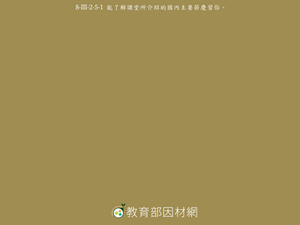 學習表現:8-Ⅲ-2 能了解課堂中所介紹的國內主要節慶習俗。