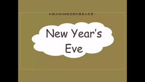 本影片所學為跨年夜(New Year's Eve),影片介紹了不同國家慶祝跨年夜的方式。英國人會舉辦派對;日本人會到寺廟祈求好運;美國人會到時代廣場(Time's Square)看表演和購物;澳洲人會到雪梨(Sydney)看煙火秀。最後利用練習題幫助學生熟悉所學內容。