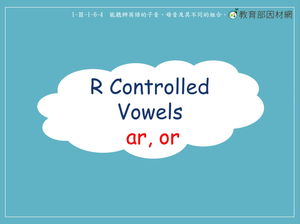 本影片所學發音規則為母音組合ar, or,影片中所使用的單字包含ar結尾的jar,car及在中間的dark, park, guard, hard,還有or在中間發音為 [ɔ]的corn, fork, report及發音為[ɝ]的work,word,worth。