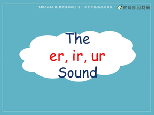 本影片學習發音為[ɚ]的長母音er, ir, ur,影片中所使用的單字包含 er:under, tiger, teacher, super, better以及ir: bird, birthday, girl, skirt, shirt,還有ur在中間的nurse, Saturday, turtle, turkey以及ur結尾的fur。