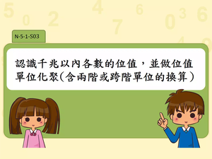 認識千兆以內各數的位值,並做位值單位化聚(含兩階或跨階單位的換算)。