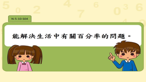 學習內容:N-5-10 解題:比率與應用。整數相除的應用。含「百分率」、「折」、「成」。