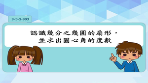 學習內容:S-5-3 扇形:扇形的定義。「圓心角」。扇形可視為圓的一部分。將扇形與分數結合(幾分之幾圓)。能畫出指定扇形。