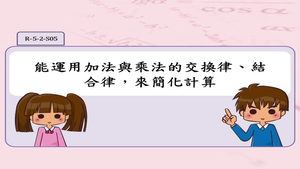 學習內容:R-5-2 四則計算規律(II):乘除混合計算。「乘法對加法或減法的分配律」。將計算規律應用於簡化混合計算。熟練整數四則混合計算。