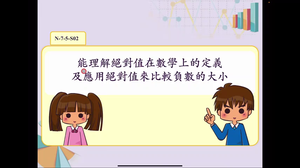 學習內容:N-7-5 數線:擴充至含負數的數線;比較數的大小;絕對值的意義;以 | a−b | 表示數線上兩點a, b的距離。