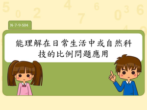 學習內容:N-7-9 比與比例式:比;比例式;正比;反比;相關之基本運算與應用問題,教學情境應以有意義之比值為例。