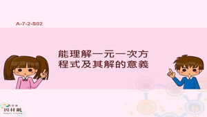 學習內容:A-7-2 一元一次方程式的意義:一元一次方程式及其解的意義;具體情境中列出一元一次方程式。