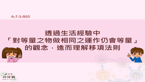 透過生活經驗中「對等量之物做相同之運作仍會等量」的觀念,進而理解移項法則。
