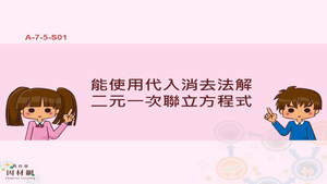 學習內容:A-7-5 二元一次聯立方程式的解法與應用:代入消去法;加減消去法;應用問題。