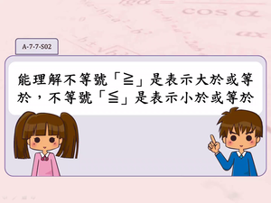 學習內容:A-7-7 一元一次不等式的意義:不等式的意義;具體情境中列出一元一次不等式。