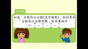 學習內容:N-6-3 分數的除法:整數除以分數、分數除以分數的意義。最後理解除以一數等於乘以其倒數之公式。