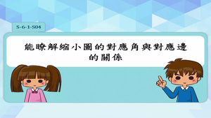 學習內容:S-6-1 放大與縮小:比例思考的應用。「幾倍放大圖」、「幾倍縮小圖」。知道縮放時,對應角相等,對應邊成比例。