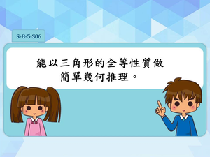 學習表現:s-Ⅳ-9 理解三角形的邊角關係,利用邊角對應相等,判斷兩個三角形的全等,並能應用於解決幾何與日常生活的問題。