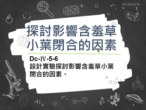 學習內容:Dc-Ⅳ-5 生物體能覺察外界環境變化、採取適當的反應以使體內環境維持恆定,這些現象能以觀察或改變自變項的方式來探討。