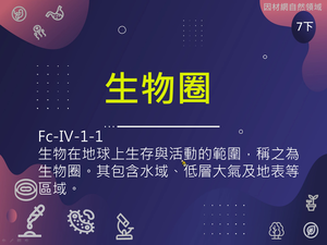 學習內容:Fc-Ⅳ-1 生物圈內含有不同的生態系。生態系的生物因子,其組成層次由低到高為個體、族群、群集。